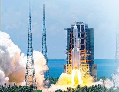 當晚,南海夜空升起一道璀璨的軌跡,宣示長五首發(fā)成功。