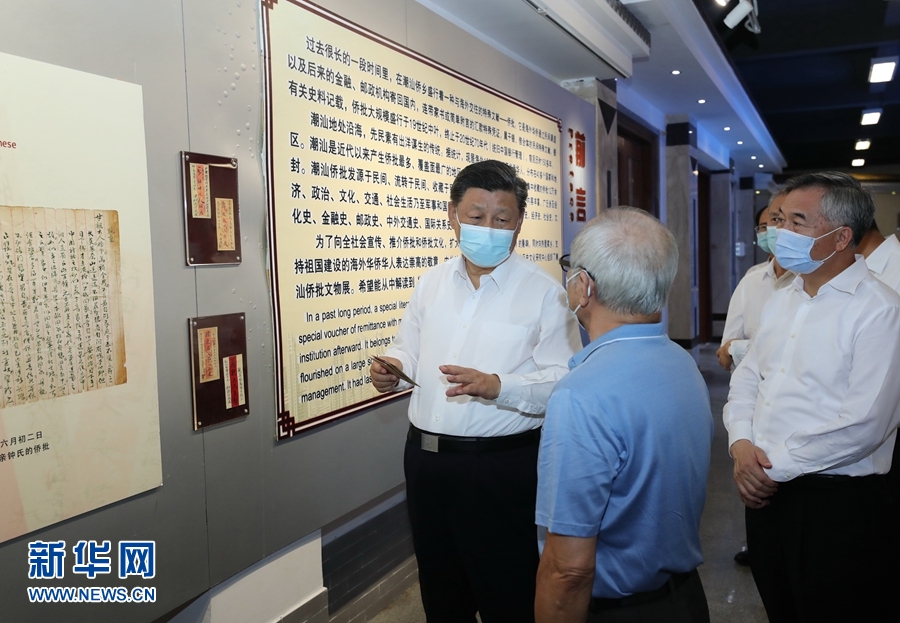 隨后,習(xí)近平參觀了具有潮汕僑鄉(xiāng)特色的僑批文物館。過去很長一段時(shí)間,海外華僑通過民間渠道將連帶家書或簡單附言的匯款憑證寄回國內(nèi),這些“僑批”成為研究近代華僑史的珍貴檔案。習(xí)近平聽取僑批歷史和潮汕華僑文化介紹。他強(qiáng)調(diào),“僑批”記載了老一輩海外僑胞艱難的創(chuàng)業(yè)史和濃厚的家國情懷,也是中華民族講信譽(yù)、守承諾的重要體現(xiàn)。要保護(hù)好這些“僑批”文物,加強(qiáng)研究,教育引導(dǎo)人們不忘近代我國經(jīng)歷的屈辱史和老一輩僑胞艱難的創(chuàng)業(yè)史,并推動(dòng)全社會(huì)加強(qiáng)誠信建設(shè)。潮汕地區(qū)是我國著名僑鄉(xiāng)。汕頭經(jīng)濟(jì)特區(qū)要根據(jù)新的實(shí)際做好“僑”的文章,加強(qiáng)海外華僑工作,引導(dǎo)和激勵(lì)他們在支持和參與祖國現(xiàn)代化建設(shè)、弘揚(yáng)中華文化、促進(jìn)祖國和平統(tǒng)一、密切中外交流合作等方面發(fā)揮更大作用。