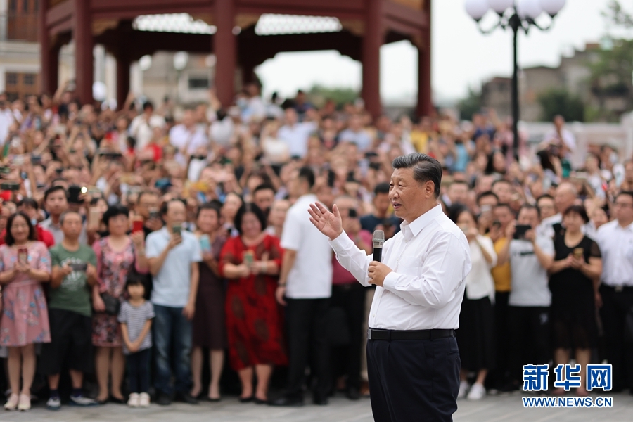 當(dāng)?shù)厝罕姾陀慰蛡円姷娇倳泚砹?,爭相圍攏上來向總書記問好。習(xí)近平祝大家生活愉快、健康幸福。他指出,我國改革開放和經(jīng)濟(jì)特區(qū)的建設(shè)同大批心系鄉(xiāng)梓、心系祖國的華僑是分不開的。我們即將全面建成小康社會(huì)、開啟全面建設(shè)社會(huì)主義現(xiàn)代化國家新征程,向第二個(gè)百年奮斗目標(biāo)進(jìn)軍。到本世紀(jì)中葉把我國建成富強(qiáng)民主文明和諧美麗的社會(huì)主義現(xiàn)代化強(qiáng)國,是海內(nèi)外全體中華兒女的共同心愿。今年是經(jīng)濟(jì)特區(qū)建立40周年,我特地來汕頭經(jīng)濟(jì)特區(qū)考察調(diào)研,就是要向國內(nèi)外宣示,中國共產(chǎn)黨領(lǐng)導(dǎo)中國人民將堅(jiān)定不移走改革開放道路,奮發(fā)有為推進(jìn)社會(huì)主義現(xiàn)代化建設(shè),鍥而不舍實(shí)現(xiàn)中華民族偉大復(fù)興的中國夢。希望鄉(xiāng)親們攜手努力,共同奮斗!