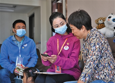 “您好,我們是奧運(yùn)村街道國(guó)奧村社區(qū)第七次全國(guó)人口普查指導(dǎo)員杜慧婧和普查員婁洪勇,這是我們的工作證?!?0月17日上午,在國(guó)奧村社區(qū)一戶居民家門口,普查員用標(biāo)準(zhǔn)的“七人普”開場(chǎng)白“敲”開了住戶的家門。