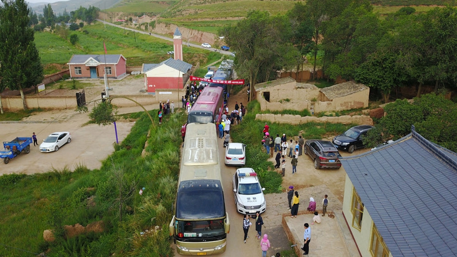 寧夏西吉縣白崖鄉(xiāng)半子溝村村民準(zhǔn)備集體搬遷至寧夏銀川市金鳳區(qū)潤(rùn)豐村(2017年8月17日攝,無(wú)人機(jī)照片)。新華社記者 王鵬 攝