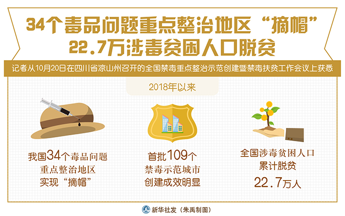 新華社成都10月20日電(記者熊豐)2018年以來,我國34個毒品問題重點(diǎn)整治地區(qū)實現(xiàn)“摘帽”,首批109個禁毒示范城市創(chuàng)建成效明顯,全國涉毒貧困人口累計脫貧22.7萬人。