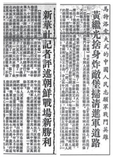 上甘嶺戰(zhàn)役期間,國內報紙刊登的新華社部分報道版面。