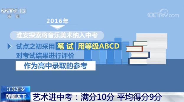 2016年,淮安探索將音樂美術納入中考,試點之初采用筆試、用等級ABCD對考試結果進行評價,作為高中錄取的參考。2018年,改革進一步深化,音樂、美術各以滿分5分分值計入中考總分,共十分,考核內(nèi)容主要是音樂、美術基本知識和基本素養(yǎng),考試方式由筆試調整為人機對話考核,不再局限在基本知識,而是注重考察學生對音樂和美術作品等欣賞辨析能力。