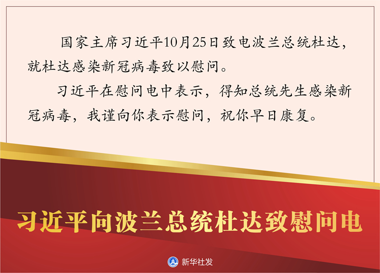 新華社北京10月25日電? 國(guó)家主席習(xí)近平10月25日致電波蘭總統(tǒng)杜達(dá),就杜達(dá)感染新冠病毒致以慰問(wèn)。