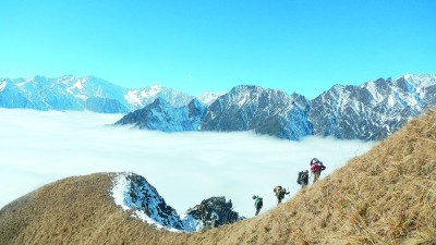 翻越山脊的臥龍調(diào)查小分隊 林紅強(qiáng)攝/光明圖片
