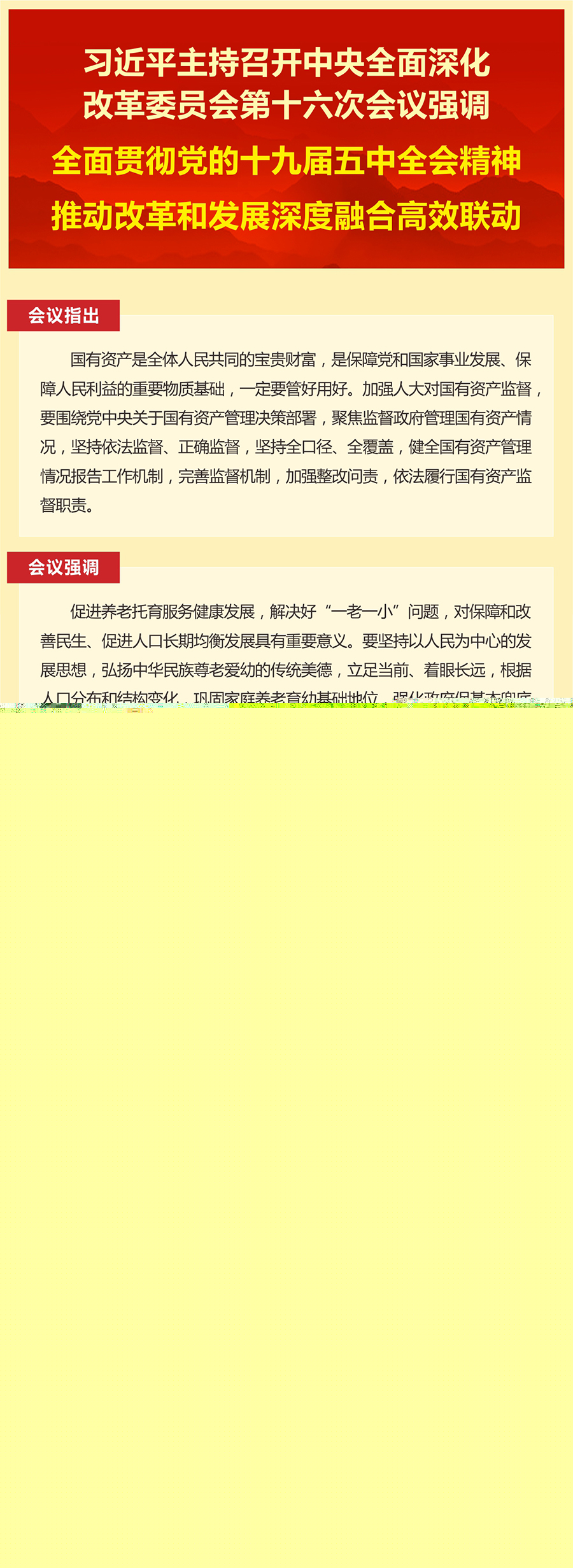 新華社北京11月2日電? 中共中央總書記、國家主席、中央軍委主席、中央全面深化改革委員會(huì)主任習(xí)近平11月2日下午主持召開中央全面深化改革委員會(huì)第十六次會(huì)議并發(fā)表重要講話。他強(qiáng)調(diào),“十三五”以來,全面深化改革取得重大突破。“十四五”時(shí)期我國將進(jìn)入新發(fā)展階段,改革又到了一個(gè)新的關(guān)頭。貫徹黨的十九屆五中全會(huì)精神,要繼續(xù)把握好改革和發(fā)展的內(nèi)在聯(lián)系,深刻認(rèn)識(shí)我國社會(huì)主要矛盾變化帶來的新特征新要求,深刻認(rèn)識(shí)錯(cuò)綜復(fù)雜國際環(huán)境帶來的新矛盾新挑戰(zhàn),深刻認(rèn)識(shí)全面深化改革的階段性新特點(diǎn)新任務(wù),緊扣貫徹新發(fā)展理念、推進(jìn)高質(zhì)量發(fā)展、構(gòu)建新發(fā)展格局,緊盯解決突出問題,提高改革的戰(zhàn)略性、前瞻性、針對(duì)性,使改革更好對(duì)接發(fā)展所需、基層所盼、民心所向,推動(dòng)改革和發(fā)展深度融合、高效聯(lián)動(dòng)。