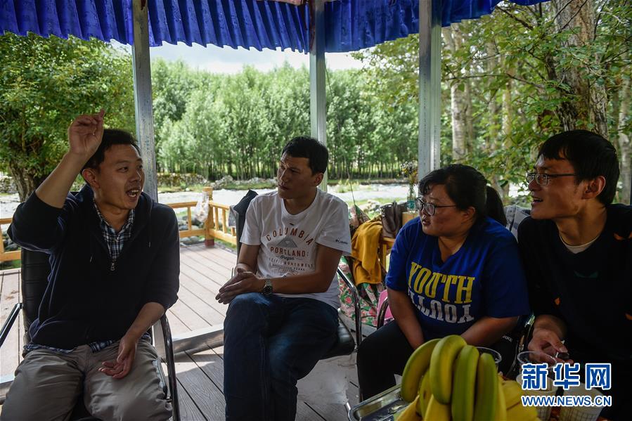 在西藏拉薩達(dá)孜區(qū),北京世紀(jì)壇醫(yī)院的援藏醫(yī)生賈萌(左一)和當(dāng)?shù)蒯t(yī)生分享診療經(jīng)驗(8月1日攝)。新華社記者 彭子洋 攝