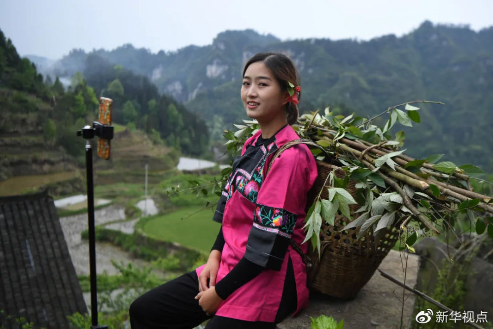 4月23日,在十八洞村拍攝的返鄉(xiāng)創(chuàng)業(yè)做直播帶貨成“網(wǎng)紅”的大學(xué)生施林嬌 新華社記者薛宇舸 攝