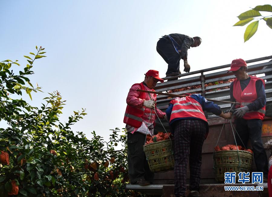 在四川省資陽市安岳縣石橋村,果農將收獲的檸檬裝車(11月11日攝)。新華社記者 周相吉 攝
