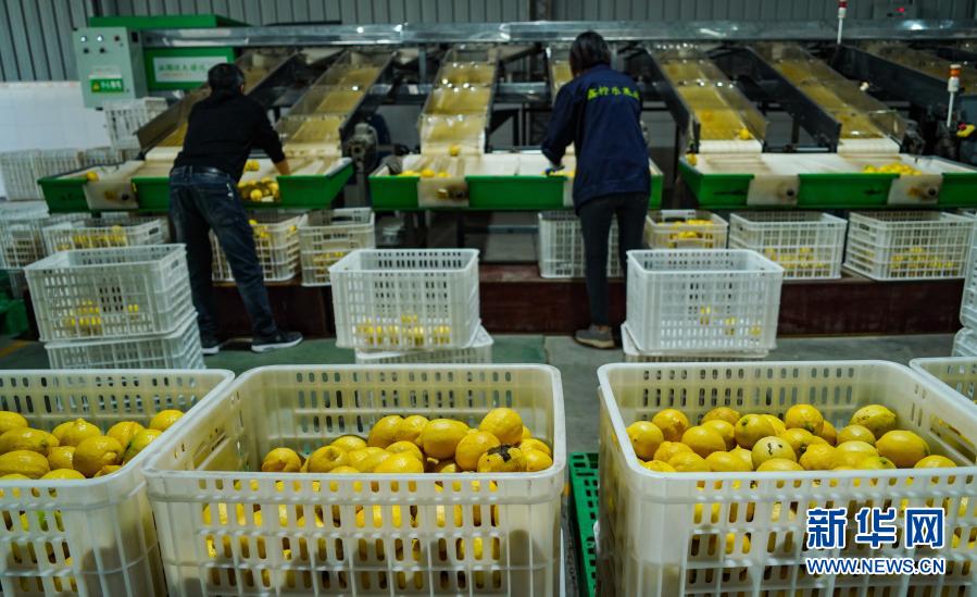 在四川省資陽市安岳縣鑫檸樂果業(yè)有限公司車間,工人通過生產線分裝檸檬(11月11日攝)。新華社記者 王曦 攝