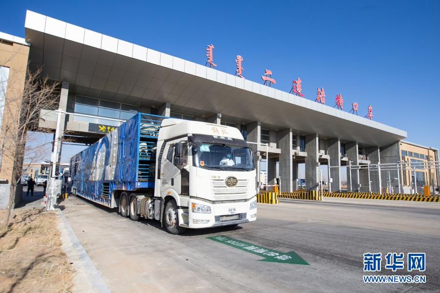 11月13日,載羊車輛從內蒙古出入境邊防檢查總站二連出入境邊防檢查站綠色通道快速通關。新華社發(fā)(郭鵬杰 攝)