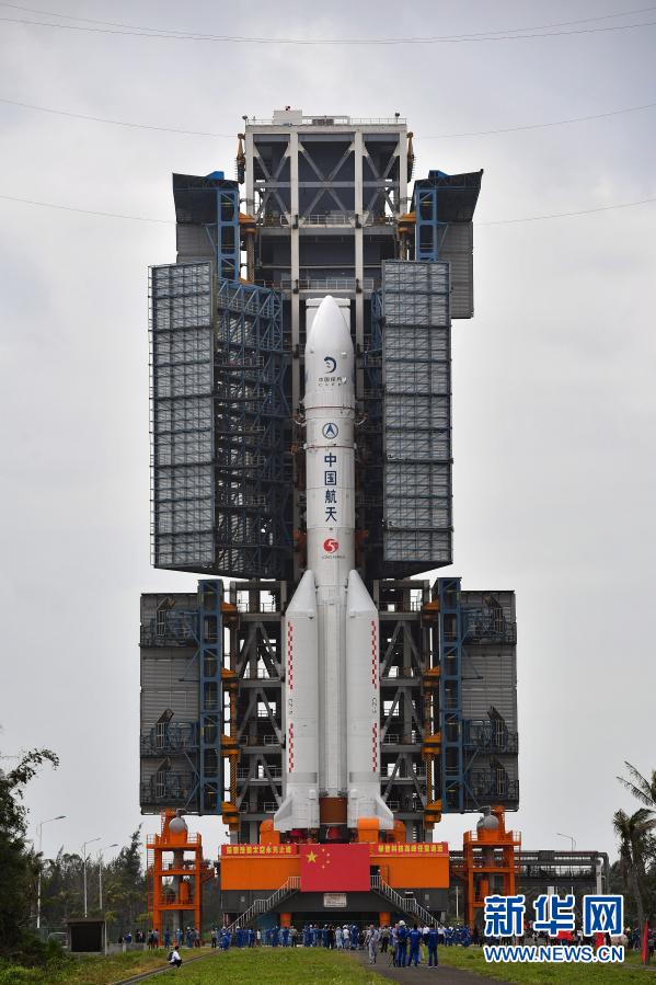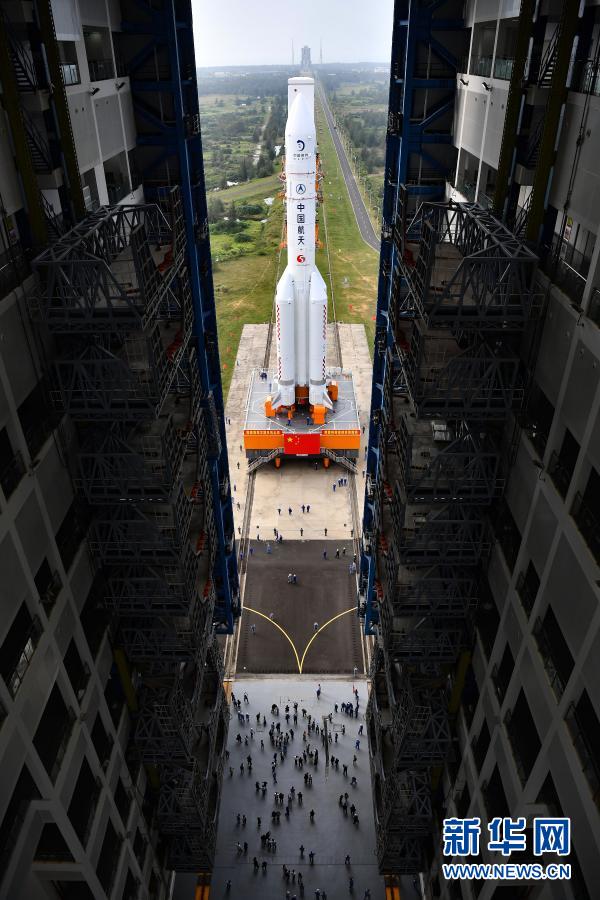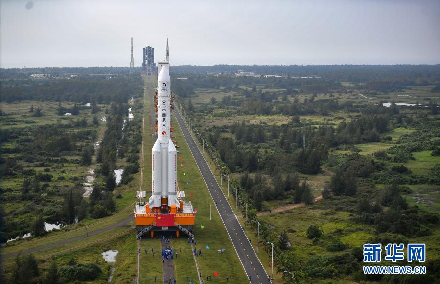新華社海南文昌11月17日電(記者胡喆、陳凱姿)記者從國家航天局獲悉,11月17日,長征五號遙五運載火箭和嫦娥五號探測器在中國文昌航天發(fā)射場完成技術(shù)區(qū)總裝測試工作后,垂直轉(zhuǎn)運至發(fā)射區(qū),計劃于11月下旬擇機實施發(fā)射。