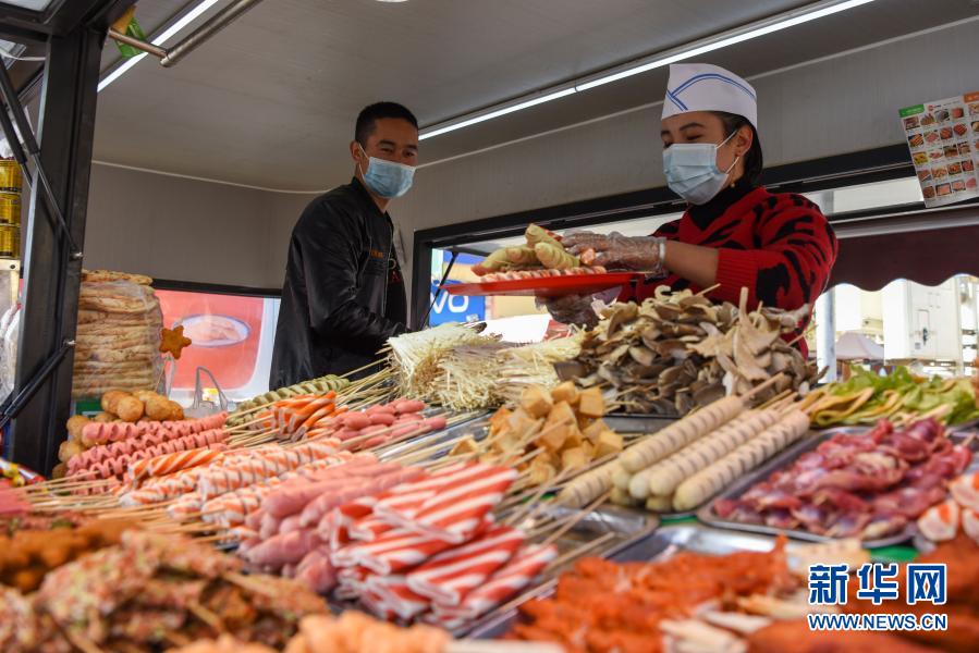 新華社烏魯木齊11月20日電(記者張鐘凱、丁磊)午飯時間,在新疆和田地區(qū)墨玉縣扎瓦鎮(zhèn)客運站旁,一輛棗紅色餐車飄出陣陣肉香。烤雞柳、炸雞脖、炸雞排……琳瑯滿目的美食吸引了不少食客。