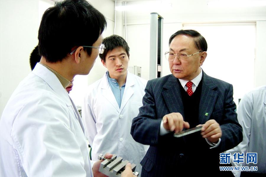 中國工程院院士、哈爾濱工業(yè)大學(xué)教授杜善義(右)為學(xué)生講解復(fù)合材料(資料照片)。新華社發(fā)
