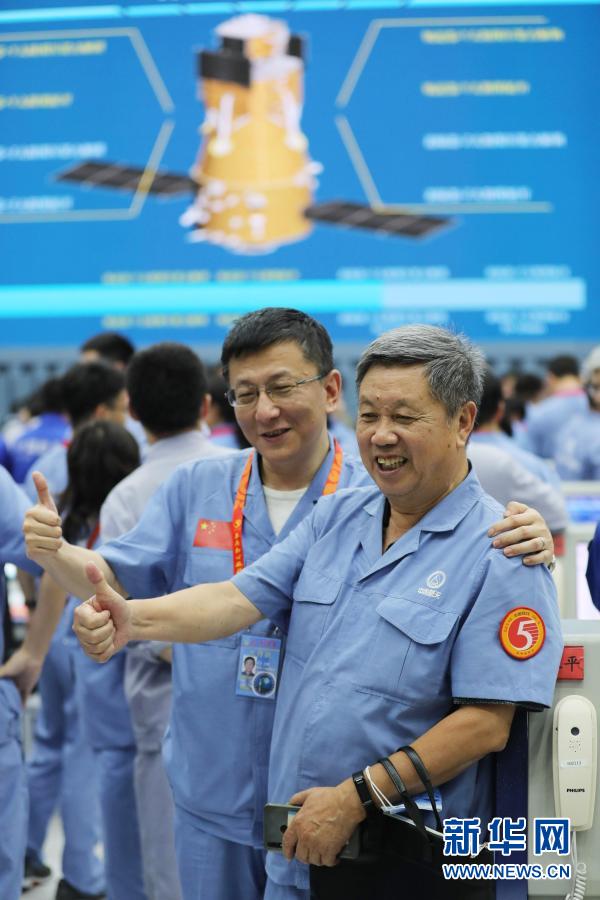 這是航天科技人員在文昌航天發(fā)射場(chǎng)慶祝發(fā)射成功。新華社記者金立旺攝