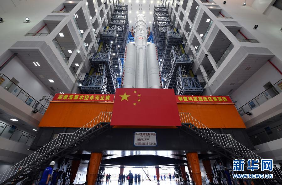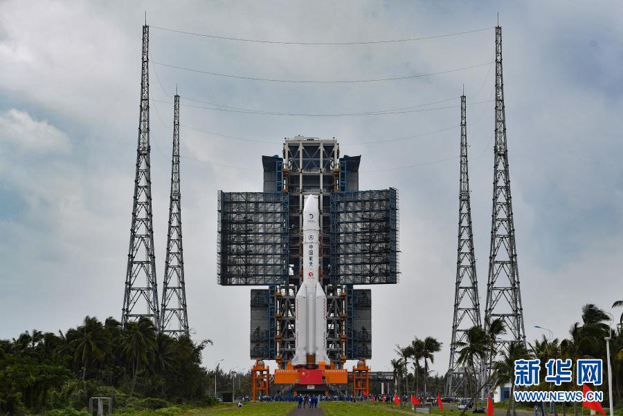 11月17日,長(zhǎng)征五號(hào)遙五運(yùn)載火箭和嫦娥五號(hào)探測(cè)器在中國(guó)文昌航天發(fā)射場(chǎng)完成技術(shù)區(qū)總裝測(cè)試工作后,垂直轉(zhuǎn)運(yùn)至發(fā)射區(qū),計(jì)劃于11月下旬擇機(jī)實(shí)施發(fā)射。新華社記者 郭程 攝