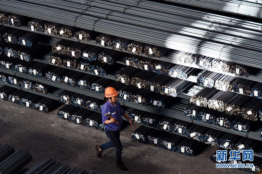 11月17日,福建省三明市三鋼集團的工人走過成品堆放區(qū)。新華社記者 姜克紅 攝