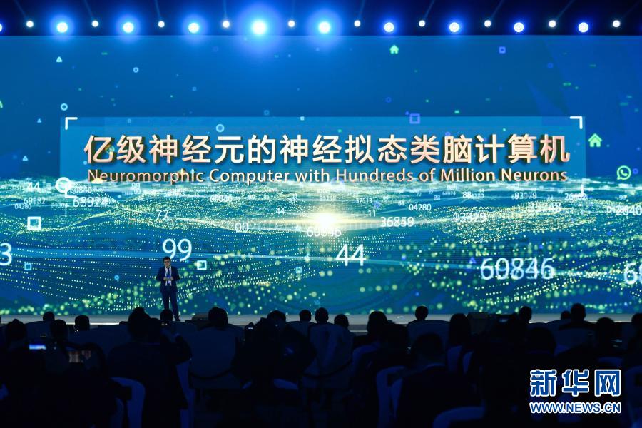 浙江大學(xué)、之江實(shí)驗(yàn)室代表在“世界互聯(lián)網(wǎng)領(lǐng)先科技成果發(fā)布”活動上介紹“億級神經(jīng)元的神經(jīng)擬態(tài)類腦計算機(jī)”(11月23日攝)。新華社記者 黃宗治 攝