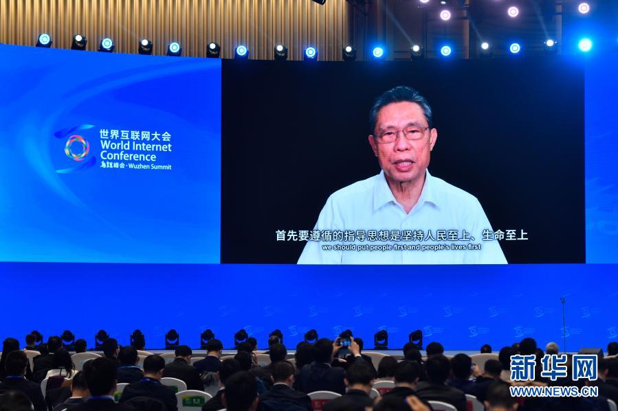 中國工程院院士鐘南山在世界互聯(lián)網(wǎng)大會·互聯(lián)網(wǎng)發(fā)展論壇“數(shù)字經(jīng)濟(jì)與科技抗疫”主論壇上以視頻形式發(fā)表演講(11月23日攝)。新華社記者 黃宗治 攝