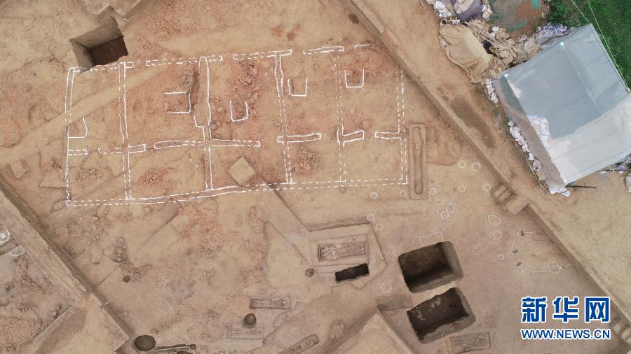 圖為河南南陽黃山遺址部分發(fā)掘現(xiàn)場航拍圖(2019年6月27日攝,無人機照片)。新華社發(fā)(河南省文物考古研究院供圖)