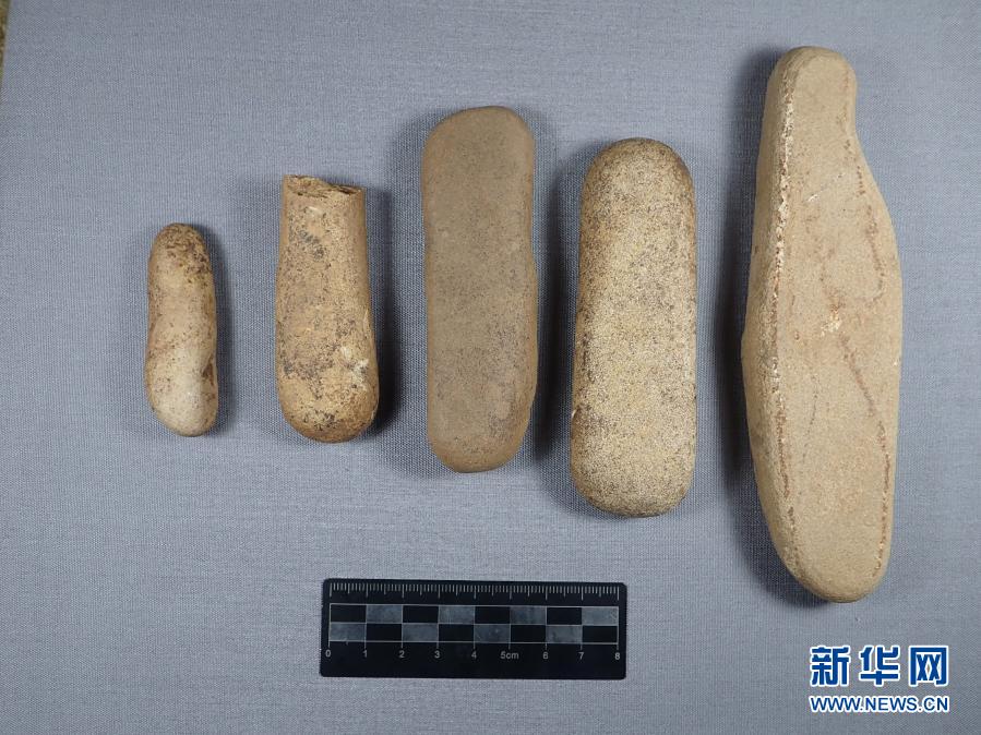河南南陽黃山遺址出土的石質(zhì)制玉工具——系列石銼(2019年1月8日攝)。新華社發(fā)(河南省文物考古研究院供圖)