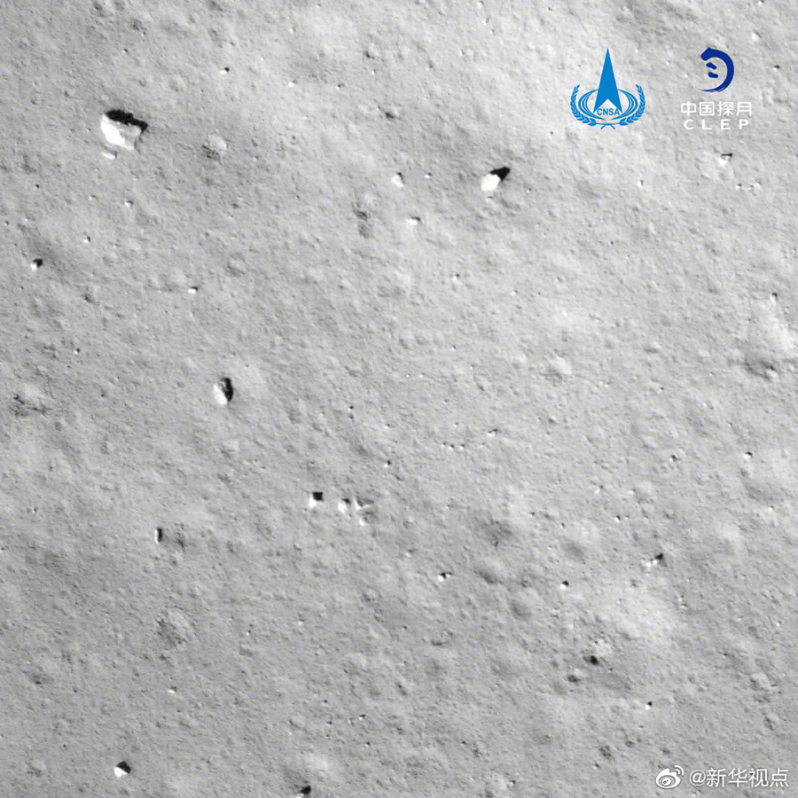 12月1日23時11分,嫦娥五號探測器成功著陸在月球正面西經(jīng)51.8度、北緯43.1度附近的預選著陸區(qū),并傳回著陸影像圖。(記者胡喆,圖片來源:國家航天局)