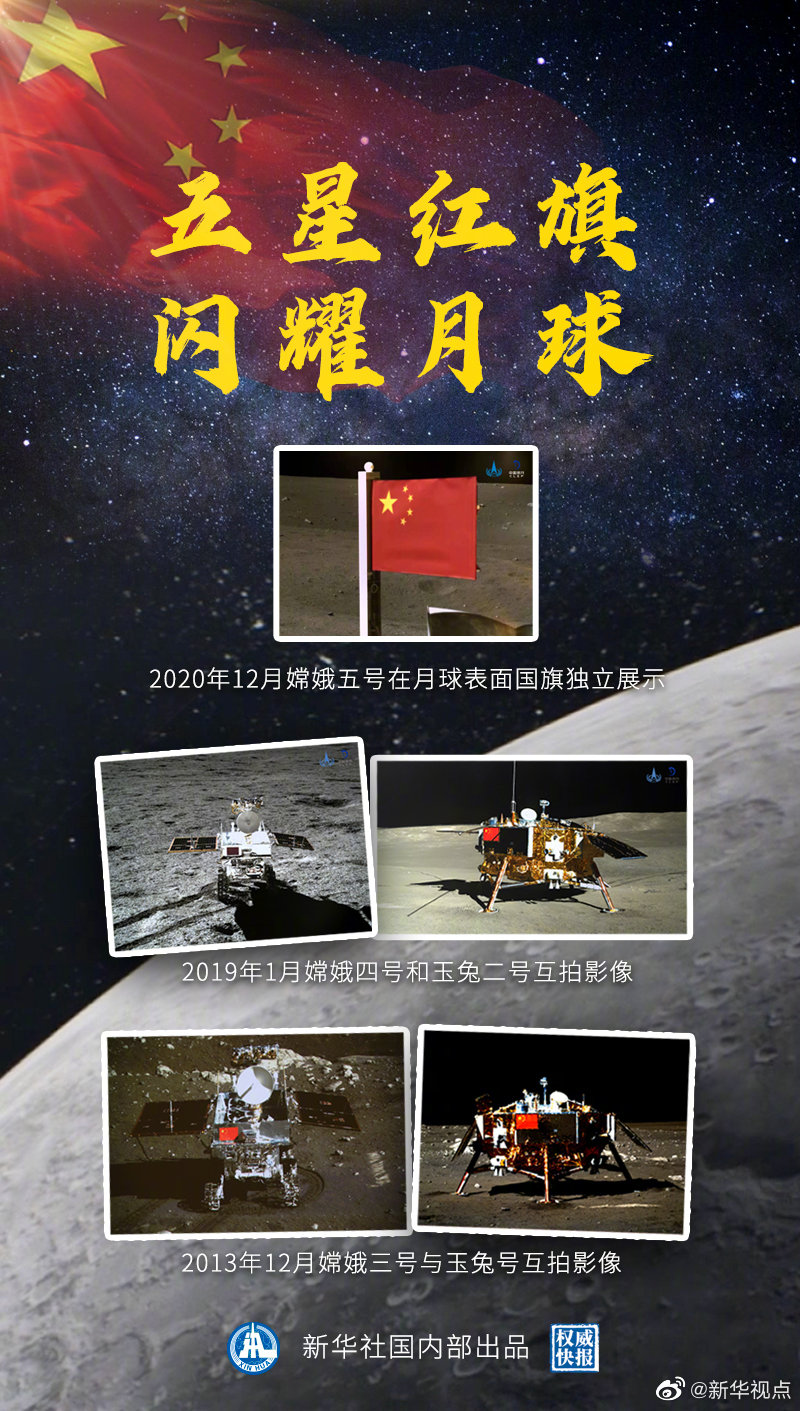 經(jīng)過科研團隊的數(shù)據(jù)接收和處理,4日下午,國家航天局公布了探月工程嫦娥五號探測器在月球表面國旗獨立展示的照片。這是繼嫦娥三號、四號任務(wù)后,五星紅旗又一次展現(xiàn)在月球表面。畫面中,鮮艷的五星紅旗格外耀眼。轉(zhuǎn)發(fā),祝福祖國!??