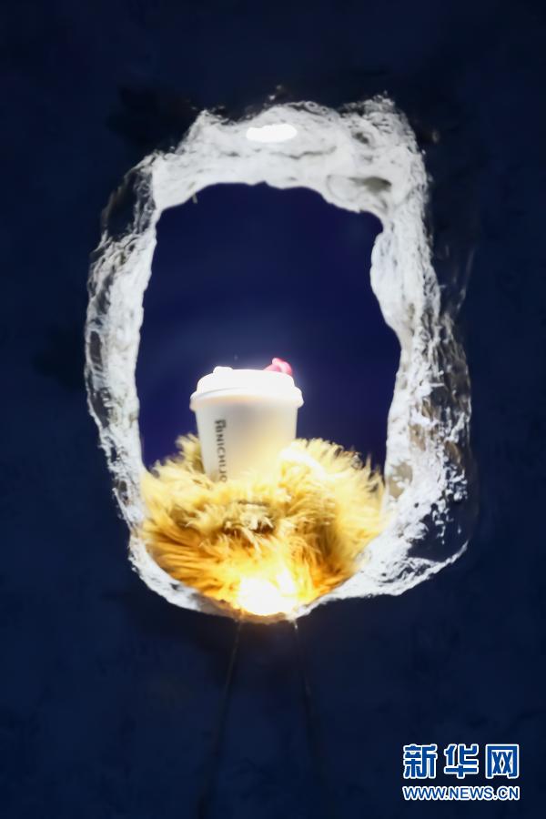 12月5日傍晚,一只“熊爪”托住咖啡伸出洞口,等待顧客取用咖啡。新華社記者 王翔 攝