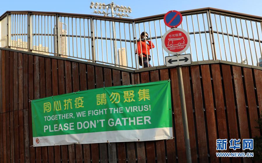 12月5日,香港市民從跑馬地的抗疫海報(bào)旁走過。新華社記者 吳曉初 攝
