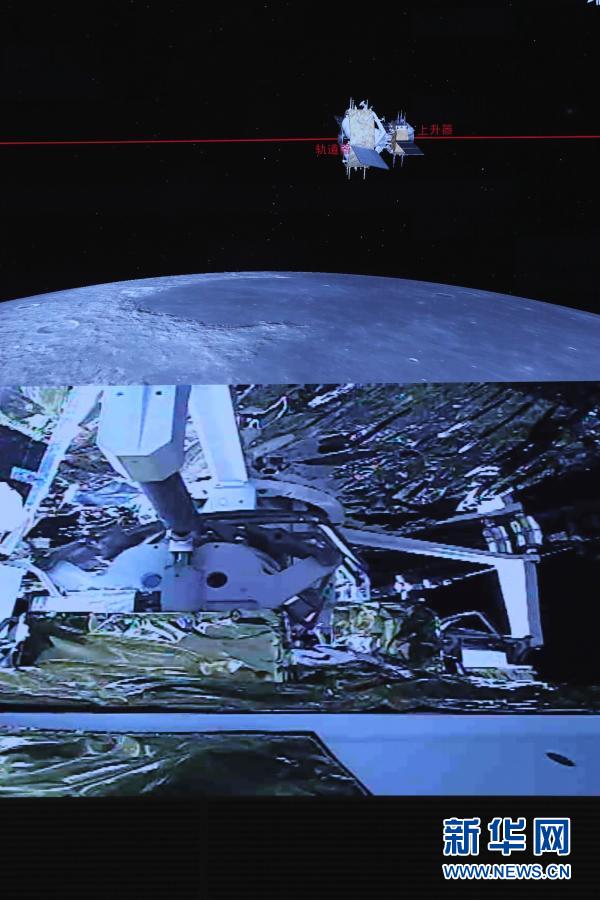記者從國家航天局獲悉,12月6日5時(shí)42分,嫦娥五號上升器成功與軌道器返回器組合體交會(huì)對接,并于6時(shí)12分將月球樣品容器安全轉(zhuǎn)移至返回器中。這是我國航天器首次實(shí)現(xiàn)月球軌道交會(huì)對接。新華社記者 金立旺 攝