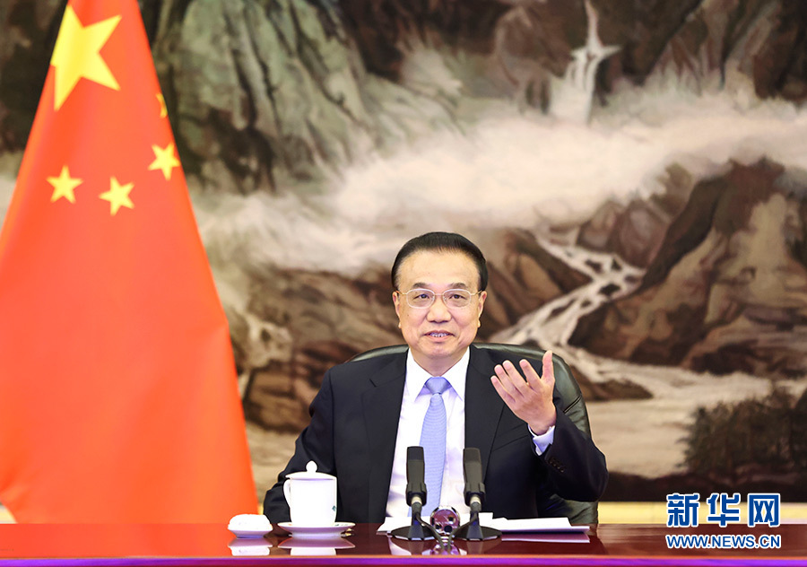 12月8日,國(guó)務(wù)院總理李克強(qiáng)在北京人民大會(huì)堂視頻會(huì)見國(guó)際貨幣基金組織總裁格奧爾基耶娃。 新華社記者 龐興雷 攝