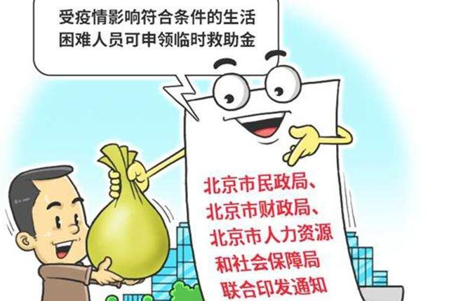 近日,北京市民政局等部門聯(lián)合出臺的《關(guān)于進一步加強困難群眾基本生活保障工作的通知》要求,對生活困難的未參保的城鄉(xiāng)失業(yè)人員、受疫情影響無法返崗復(fù)工且連續(xù)3個月無收入的京籍和持有居住證的非京籍務(wù)工人員,經(jīng)本人申請,由戶籍地和居住地所在區(qū)發(fā)放一次性臨時救助金。
