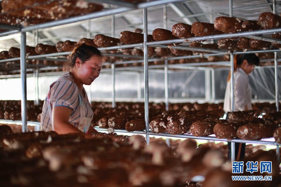 貴州省赫章縣河鎮(zhèn)鄉(xiāng)村民在香菇種植基地工作(8月4日攝)。新華社記者 劉續(xù) 攝