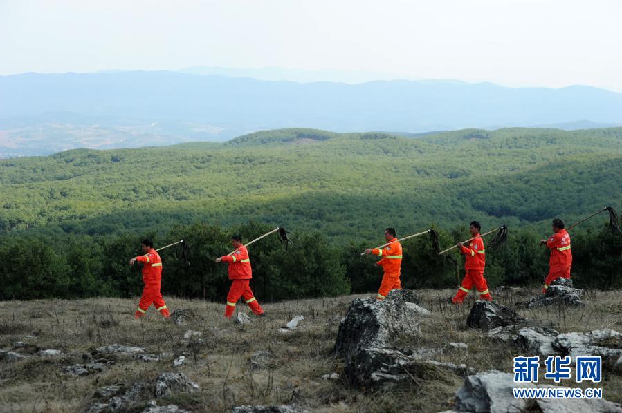 貴州省威寧縣觀風海鎮(zhèn)沙子坡林場的護林員在林區(qū)進行火險巡查(2018年3月10日攝)。新華社記者 楊文斌 攝