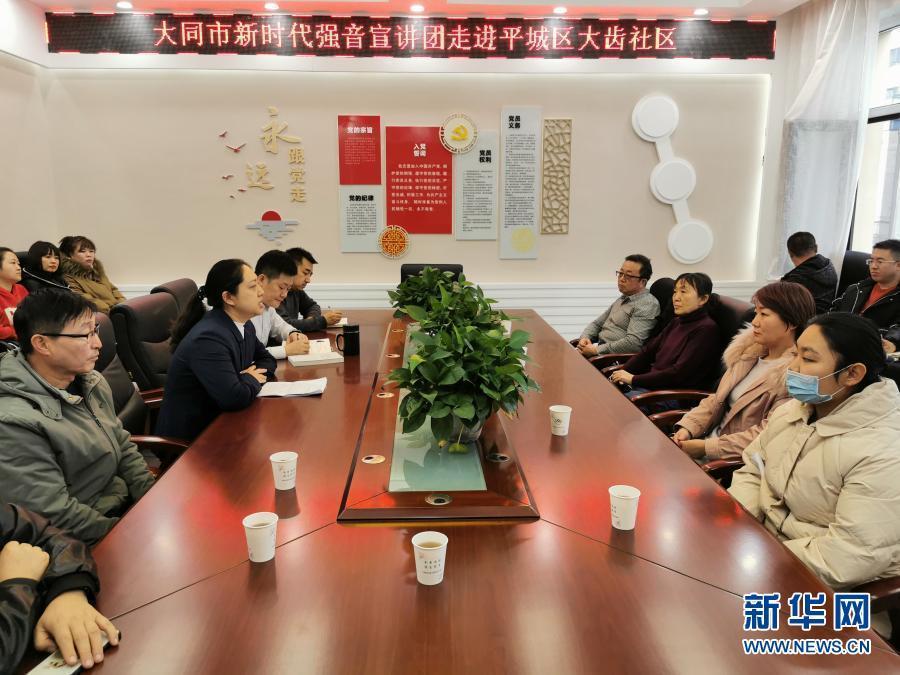 12月10日,大同市新時代強音宣講團成員賈萬新在大同市大齒社區(qū)宣講。新華社記者 王菲菲 攝