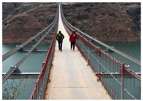 ????2019年12月11日,云南省會澤縣馬路鄉(xiāng)的村民通過跨江人行橋到貴州省威寧縣。楊文斌 攝