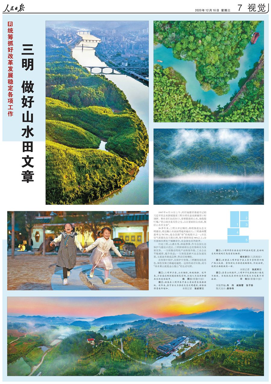 福建省三明市統(tǒng)籌推進(jìn)“五位一體”總體布局、協(xié)調(diào)推進(jìn)“四個(gè)全面”戰(zhàn)略布局,以全面貫徹落實(shí)新發(fā)展理念的生動實(shí)踐,展現(xiàn)了機(jī)制活、產(chǎn)業(yè)優(yōu)、百姓富、生態(tài)美的生動畫卷,對于各地更好貫徹新發(fā)展理念、推動高質(zhì)量發(fā)展具有重要啟示意義。今天人民日報(bào)推出多篇報(bào)道,刊發(fā)評論員文章,聚焦三明的探索和實(shí)踐。