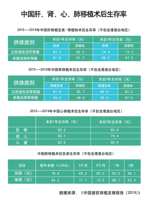 靈丹妙藥難尋就,須得妙手方回春。器官移植因其復(fù)雜程度、風(fēng)險之大,被譽為臨床醫(yī)學(xué)技術(shù)“王冠上的明珠”。黃潔夫介紹,5年來,中國器官移植術(shù)后生存率居國際前列。其中,公民逝世后器官捐獻肝移植受者術(shù)后生存率1年達83.3%,術(shù)后3年達74.4%;2018年心臟移植術(shù)后1年生存率達90.8%,高于國際心肺移植學(xué)會公布的85.4%;逝世后器官捐獻腎移植受者術(shù)后3年生存率為96.9%;2019年中國共完成9例兒童肺移植,創(chuàng)國內(nèi)年齡最小的兒童肺移植記錄(不包括港、澳、臺地區(qū))。