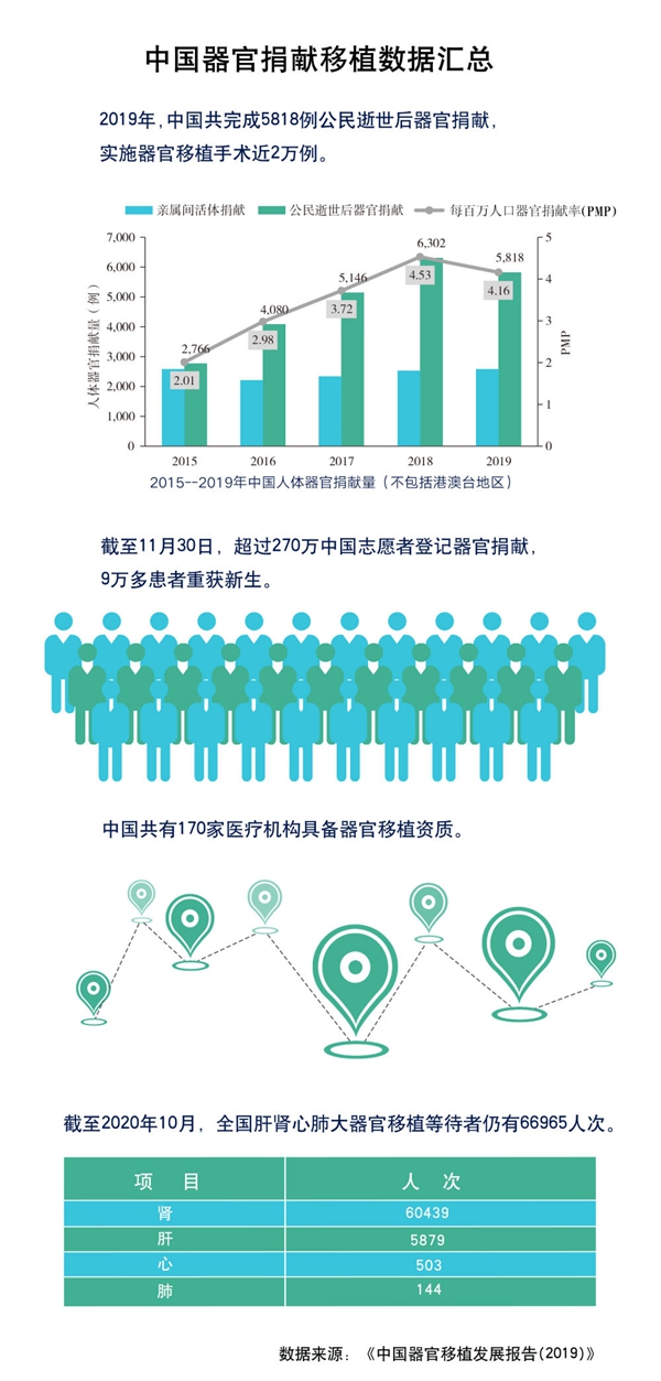 ——進一步拓寬器官捐獻來源滿足移植需求?!爸袊鞴倬璜I數(shù)量和捐獻率雖逐年增長,但與國內(nèi)患者的巨大需求相比相距甚遠?!蓖鹾2ㄕf,截至2020年10月,全國仍有60439人次等待腎移植、5879人次等待肝移植、503人次等待心移植、144人次等待肺移植。