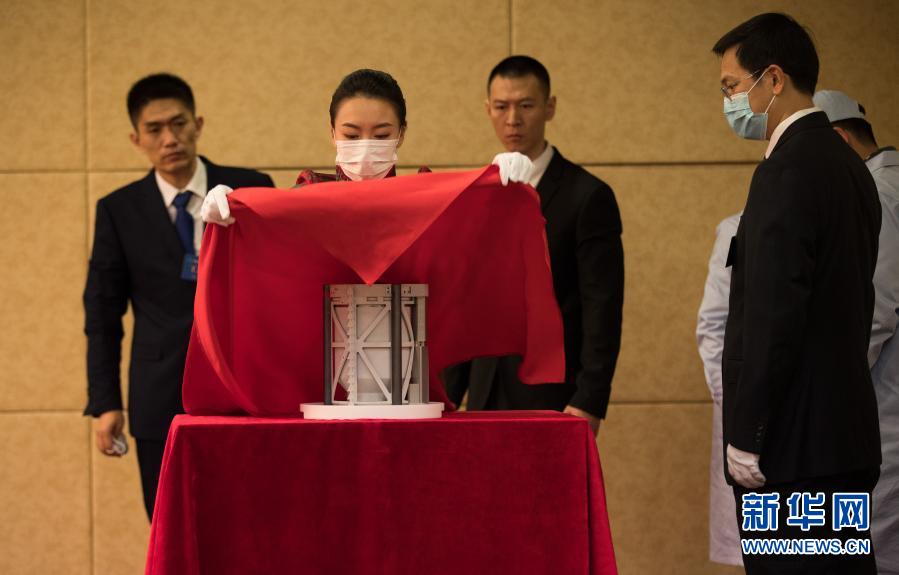 在交接儀式活動(dòng)現(xiàn)場(chǎng),工作人員給嫦娥五號(hào)月球樣品容器蓋上紅布(12月19日攝)。新華社記者 金立旺 攝