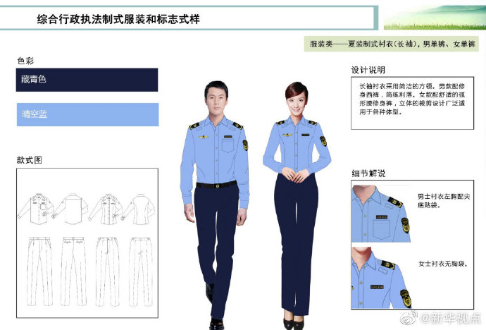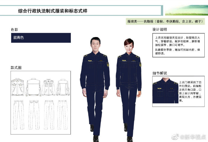 【這些綜合行政執(zhí)法部門將統(tǒng)一著裝,你喜歡嗎?】財(cái)政部、司法部日前印發(fā)《綜合行政執(zhí)法制式服裝和標(biāo)志管理辦法》,明確加強(qiáng)生態(tài)環(huán)境保護(hù)、交通運(yùn)輸、農(nóng)業(yè)、文化市場(chǎng)、應(yīng)急管理、市場(chǎng)監(jiān)管等綜合行政執(zhí)法制式服裝和標(biāo)志管理。這6支綜合行政執(zhí)法隊(duì)伍將統(tǒng)一著裝,不同執(zhí)法隊(duì)伍通過(guò)標(biāo)志中的名稱和圖案加以區(qū)分,徹底解決長(zhǎng)期以來(lái)不同執(zhí)法部門著裝五花八門的問(wèn)題。來(lái)看看這些“新衣”預(yù)覽吧?。ㄓ浾呱赇?、白陽(yáng))