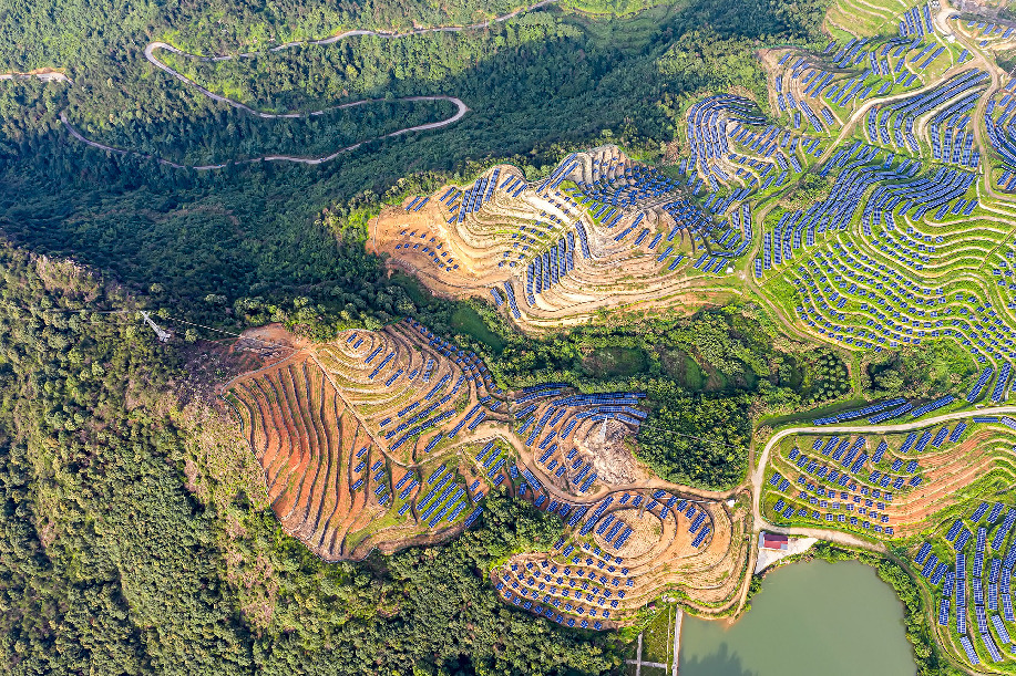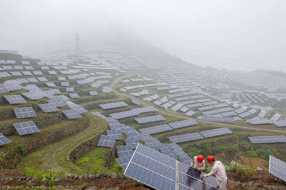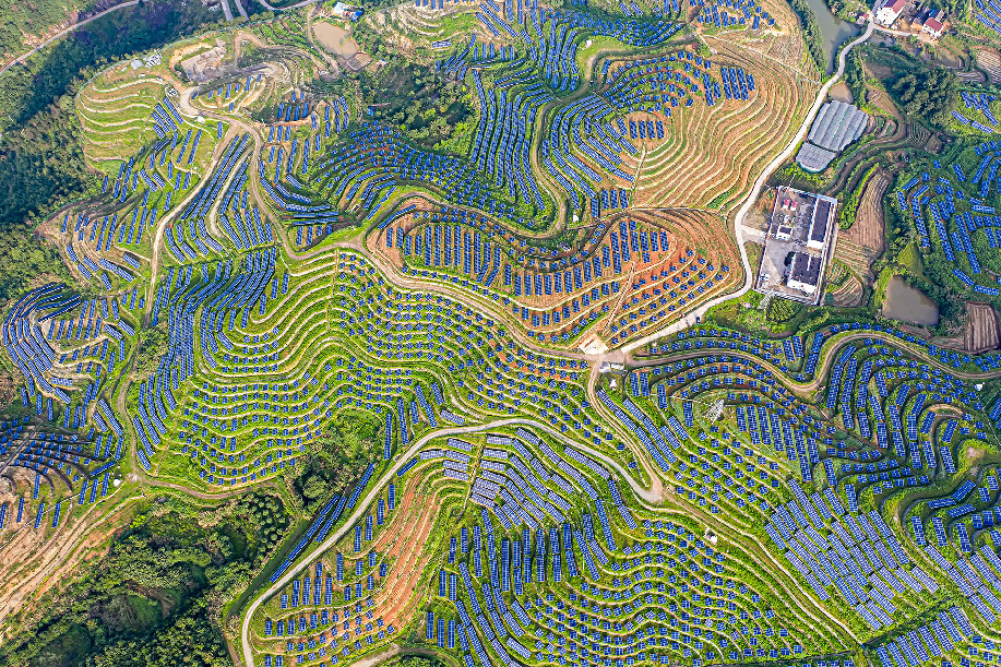 ????浙江省麗水市縉云縣充分利用列入浙江省首批清潔能源示范縣創(chuàng)建的契機,積極挖掘現(xiàn)有可再生能源資源,認真謀劃“光伏助村”“光伏助困”“光伏助農”“光伏助企”“光伏助學”等“光伏+”模式,成功探索出“可實施、可推廣、可復制、可示范”的光伏發(fā)電發(fā)展的新模式,實現(xiàn)可再生能源項目開發(fā)與服務民生的有機結合。嵌在深山上的片片光伏成為了當地農村農民的致富星。 徐景蓉 攝