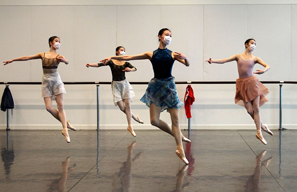 排練廳里架起了攝像機(jī)。芭蕾演員們彼此間隔超過(guò)兩米,戴著口罩,整齊協(xié)調(diào)地跳躍、起舞,姿態(tài)依然那么輕盈、優(yōu)美……項(xiàng)陽(yáng)正是其中的“口罩舞者”之一。