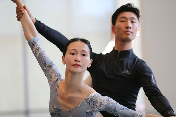 5月17日,項(xiàng)陽(yáng)(左)作為主要演員參加現(xiàn)代芭蕾《家園的呼喚》連排。