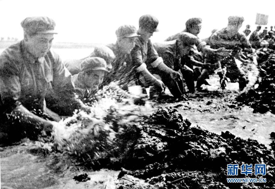 西昌衛(wèi)星發(fā)射中心西昌發(fā)射場(chǎng)建設(shè)初期,老一輩航天人在安寧河中搶建長(zhǎng)征橋(資料圖片)。新華社發(fā)