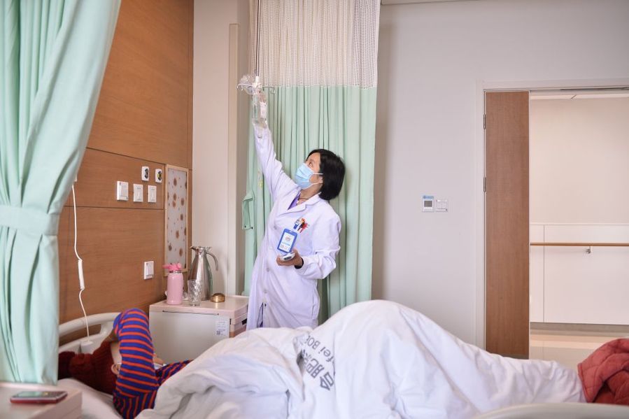 12月19日,在合肥市京東方醫(yī)院,周?chē)?guó)紅在病房工作。