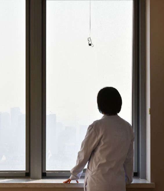 12月19日,在合肥市京東方醫(yī)院,周?chē)?guó)紅在午休時(shí)間眺望窗外。