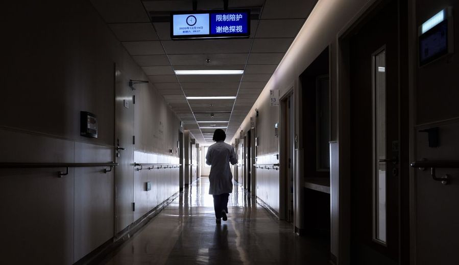 12月19日,在合肥市京東方醫(yī)院,周?chē)?guó)紅向病房走去。