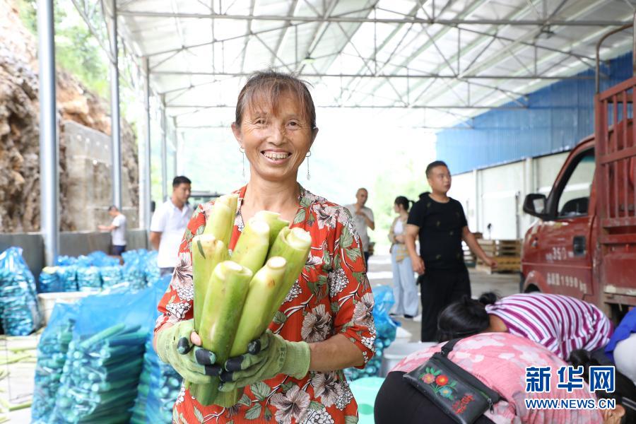貴州省黔南布依族苗族自治州長(zhǎng)順縣核子村村民在打包收獲的茭白(7月6日攝)。新華社發(fā)(朱濤 攝)